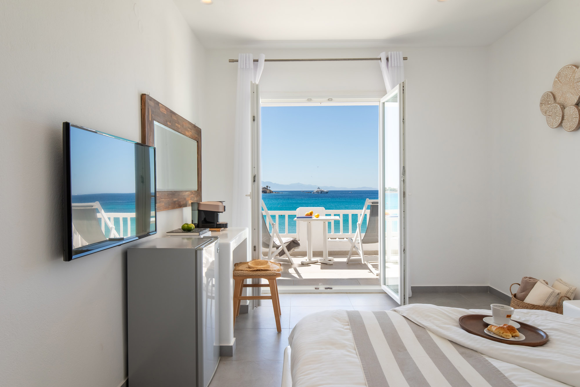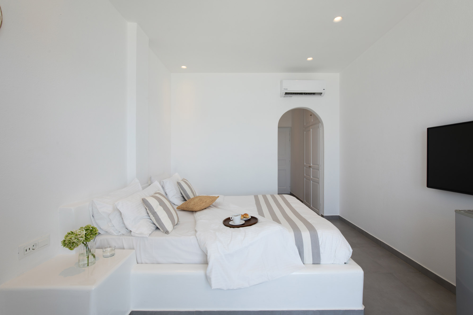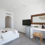 Luxury accommodation 22 m2,fully renovated 2017, elegantly decorated , featuring a king-size, a bathroom with all the amenities and a rainfall-shower ,individually air-conditioning (hot & cold), safety box, free Wi fi access, hairdryer, iron board and iron, satellite radio, 32″ satellite TV, refrigerator and private balcony with direct views of the Aegean Sea. Ideal for two people. Located at the first floor.