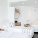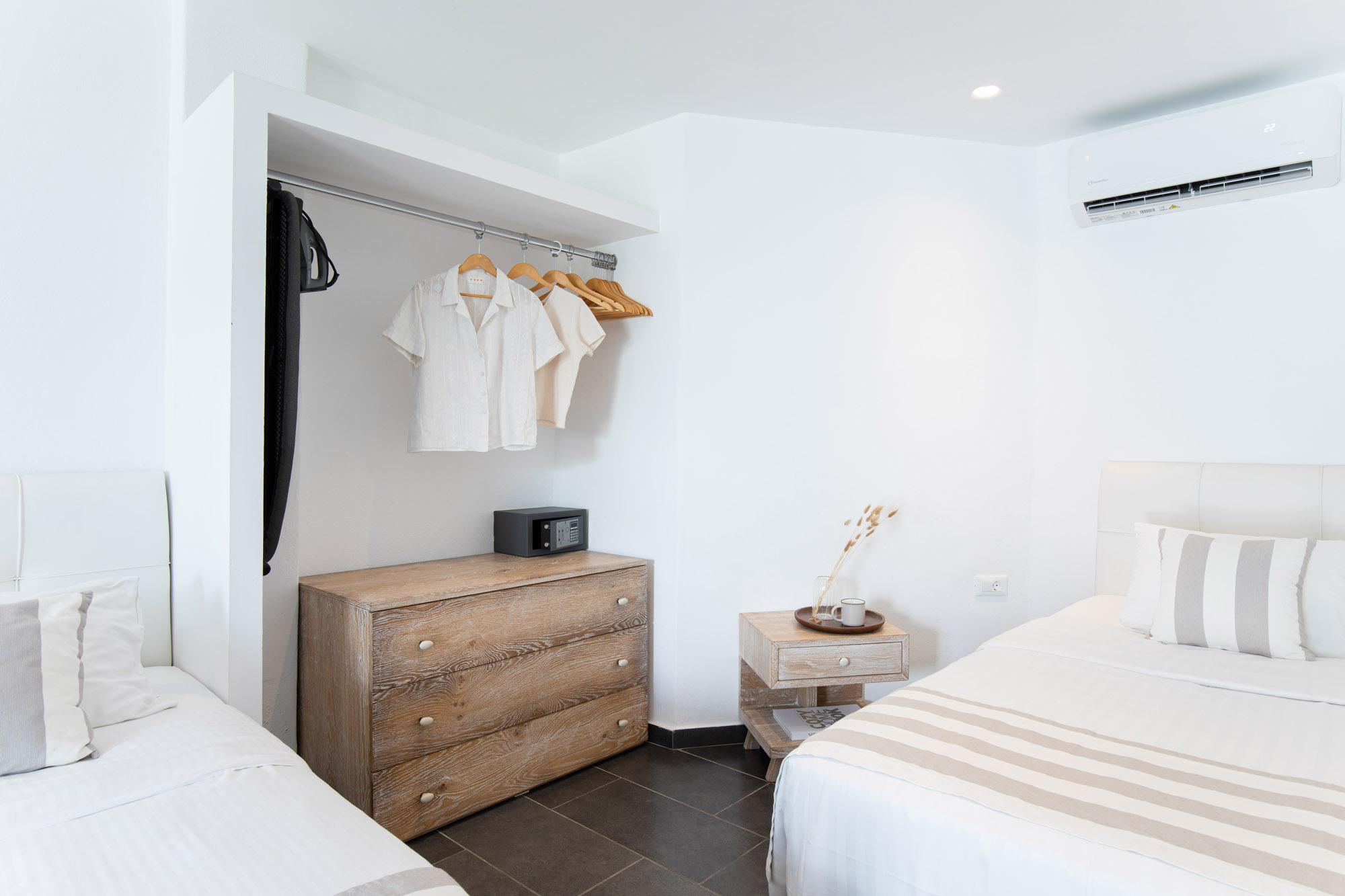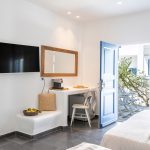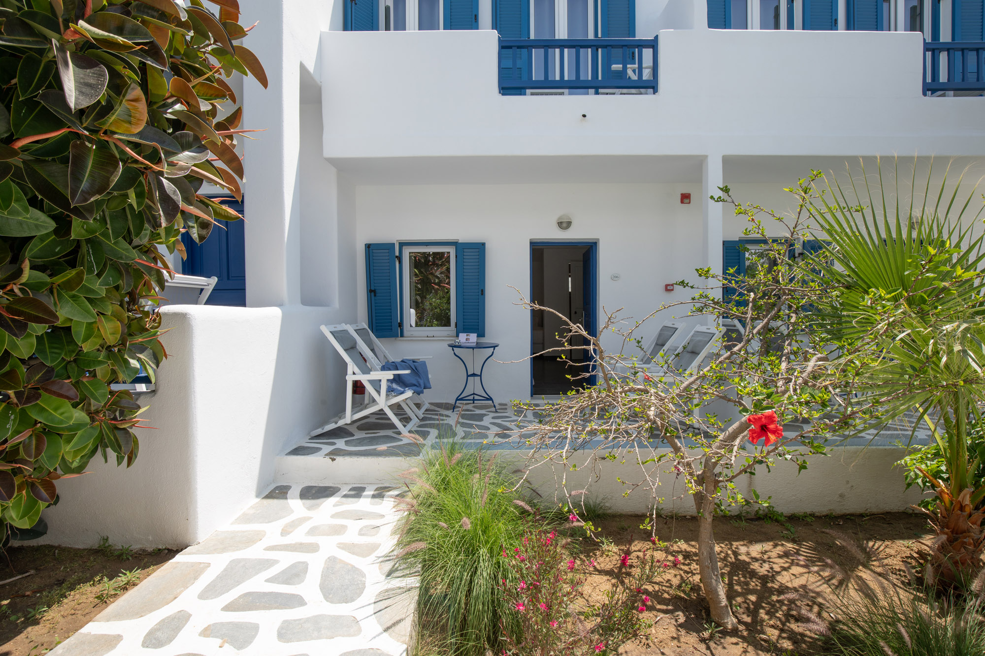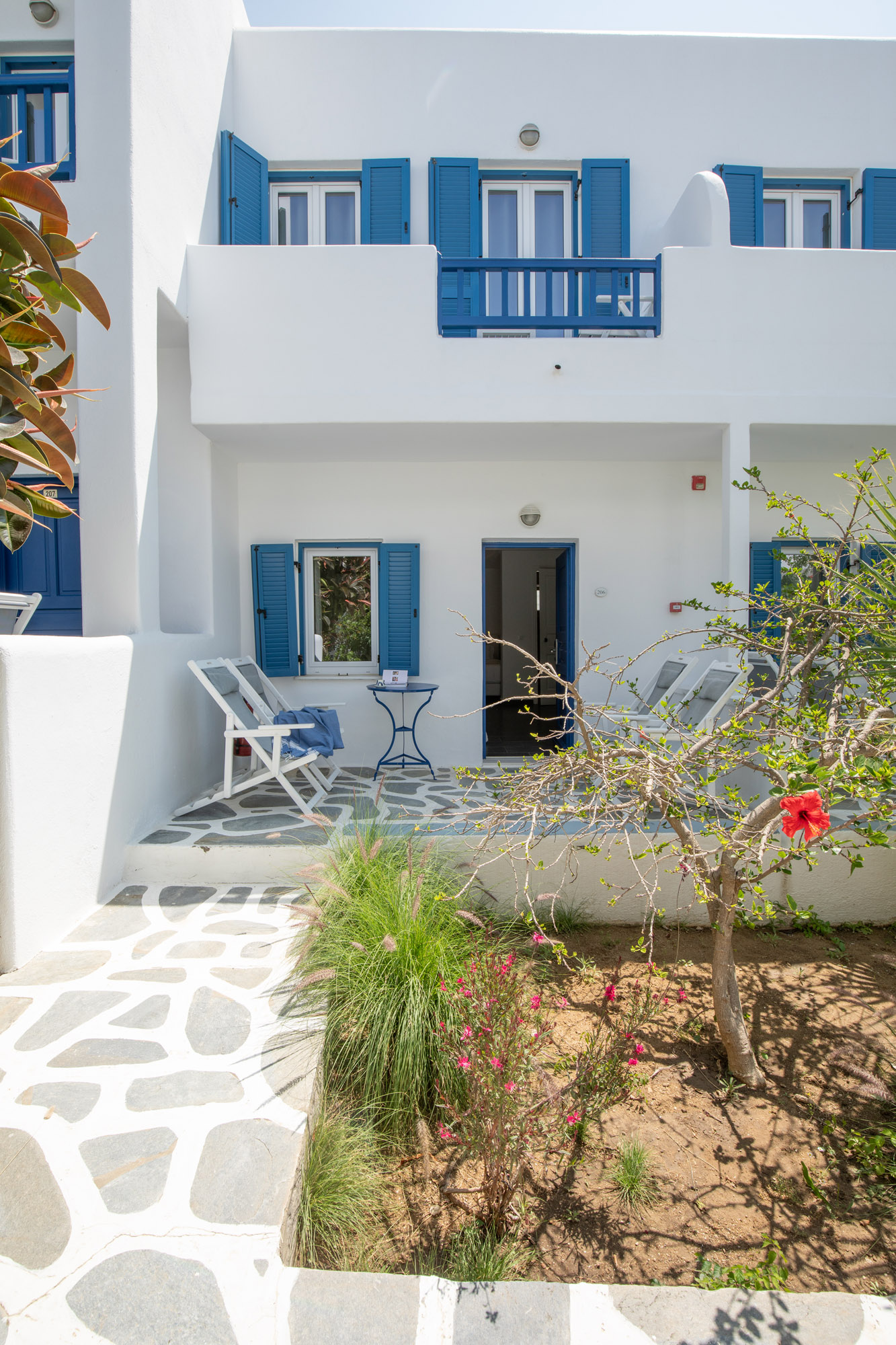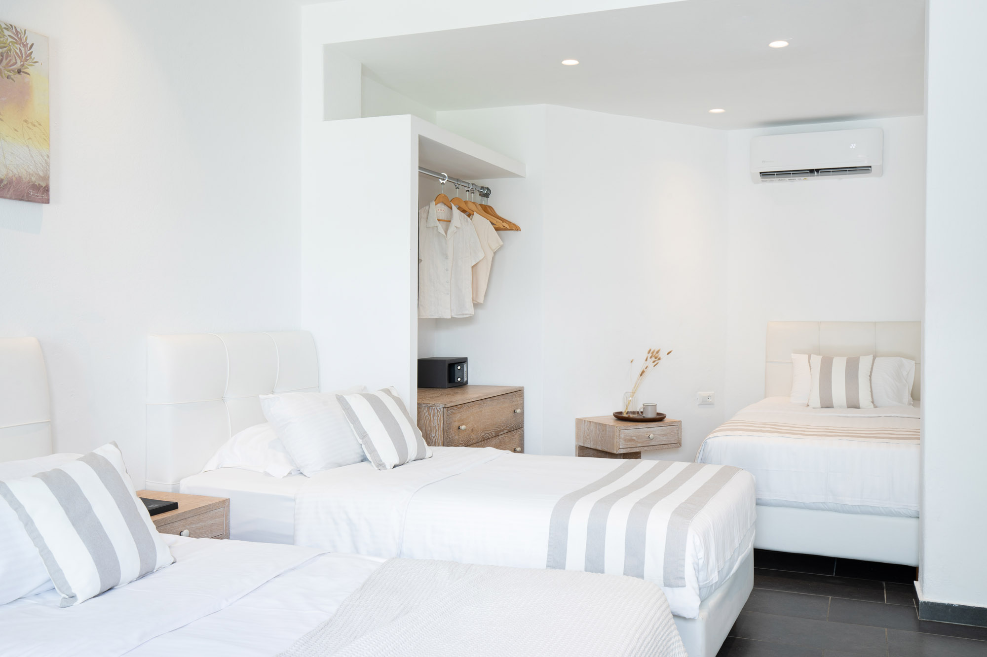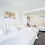 Luxury accommodation 35 m2, elegantly decorated ,fully renovated 2017 featuring a king-size and 2 twin beds, bathroom with all the amenities and a rainfall-shower ,individually air-conditioning (hot & cold),safety box, free Wi fi access,hairdryer,iron board and iron, satellite radio, 40″ satellite TV, refrigerator and private balcony with garden view. Ideal for four people.