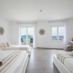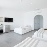 Luxury accommodation 40 m2, elegantly decorated ,fully renovated 2017 featuring a king-size and 2 twin beds, bathroom with all the amenities and 2 rainfall-showers ,individually air-conditioning (hot & cold),safety box, free Wi fi access,hairdryer,iron board and iron, satellite radio, 43″ satellite TV, refrigerator and private balcony with direct views of the Aegean Sea. Ideal for four people.located on the first floor.
