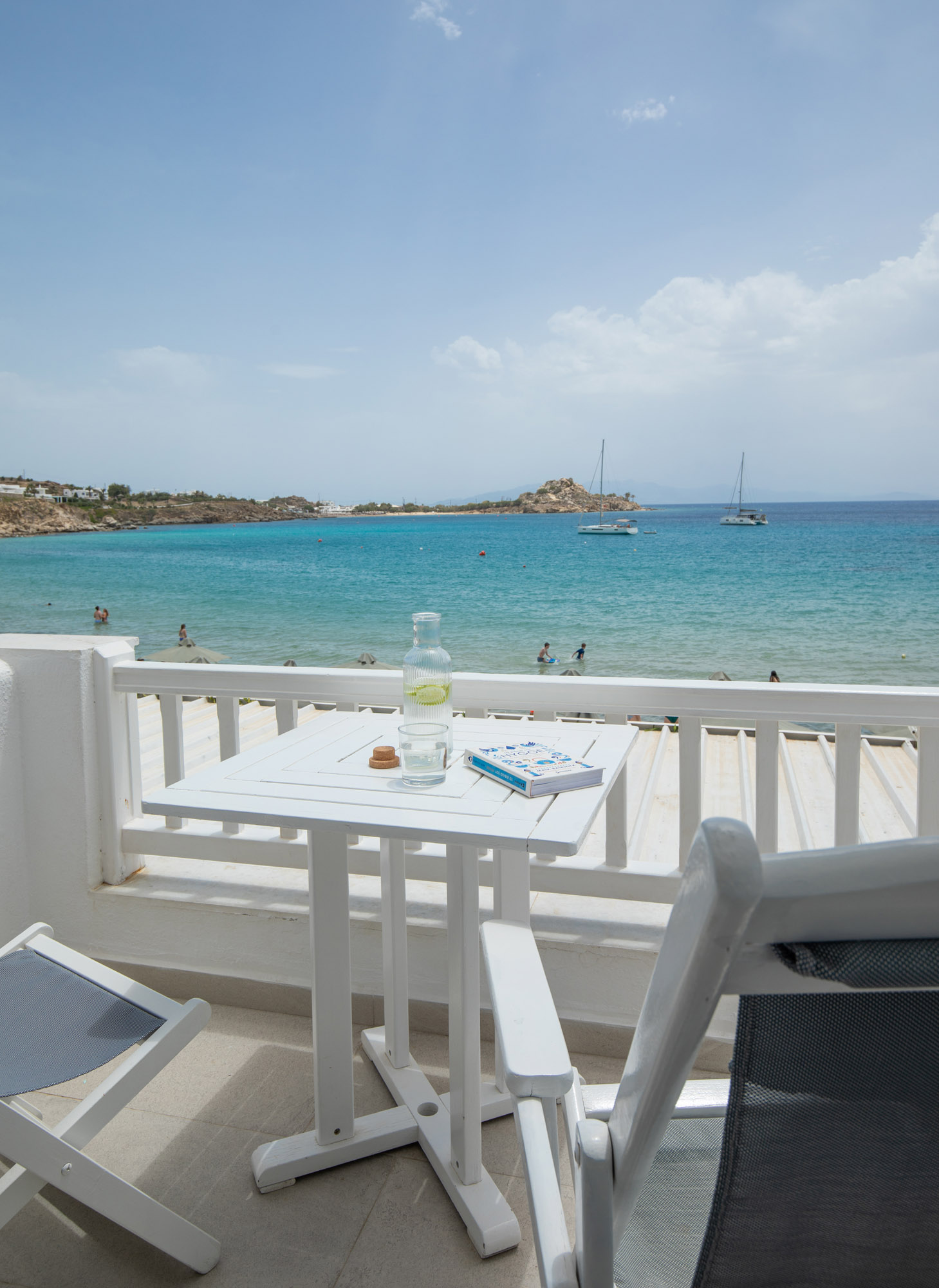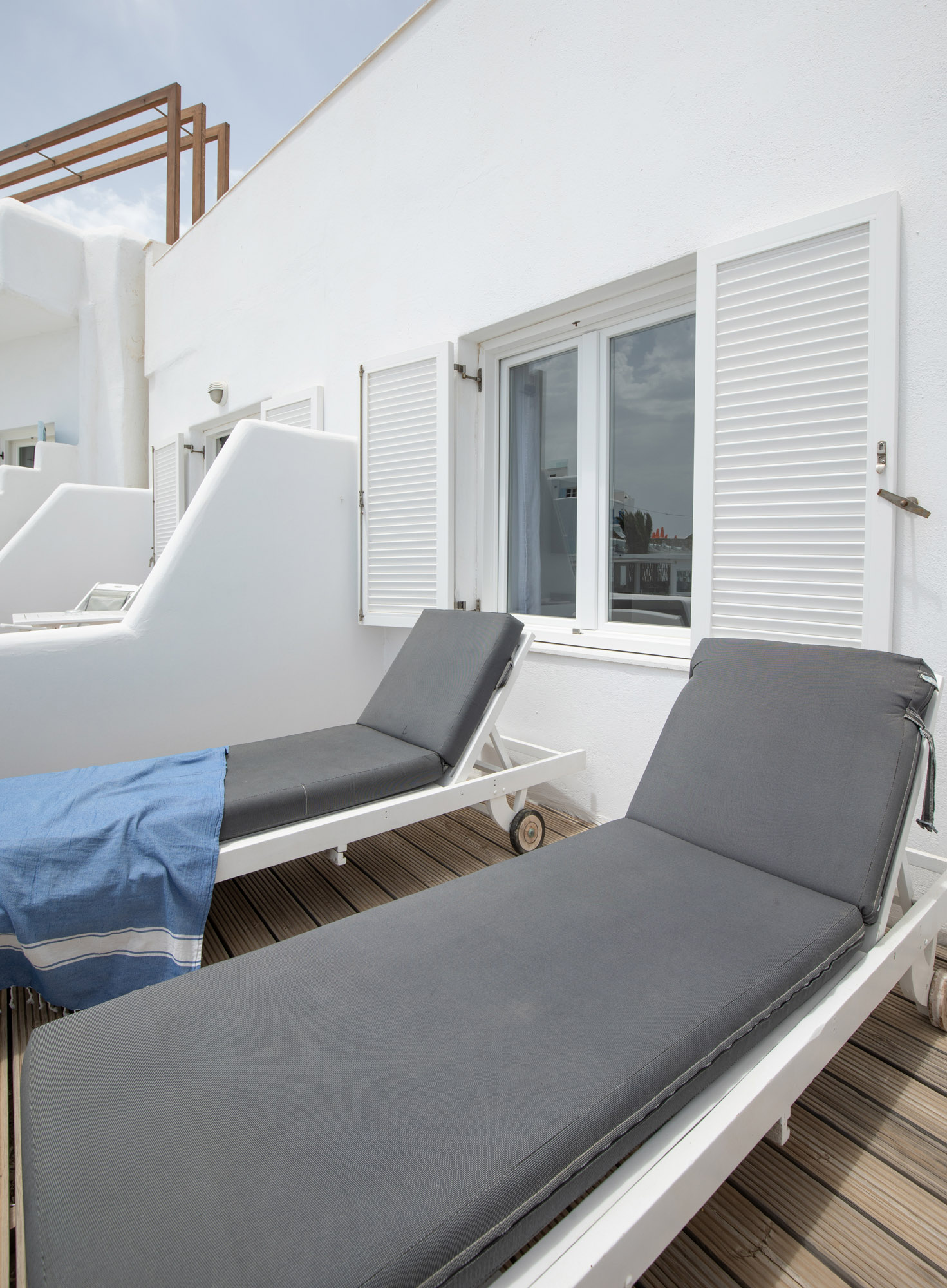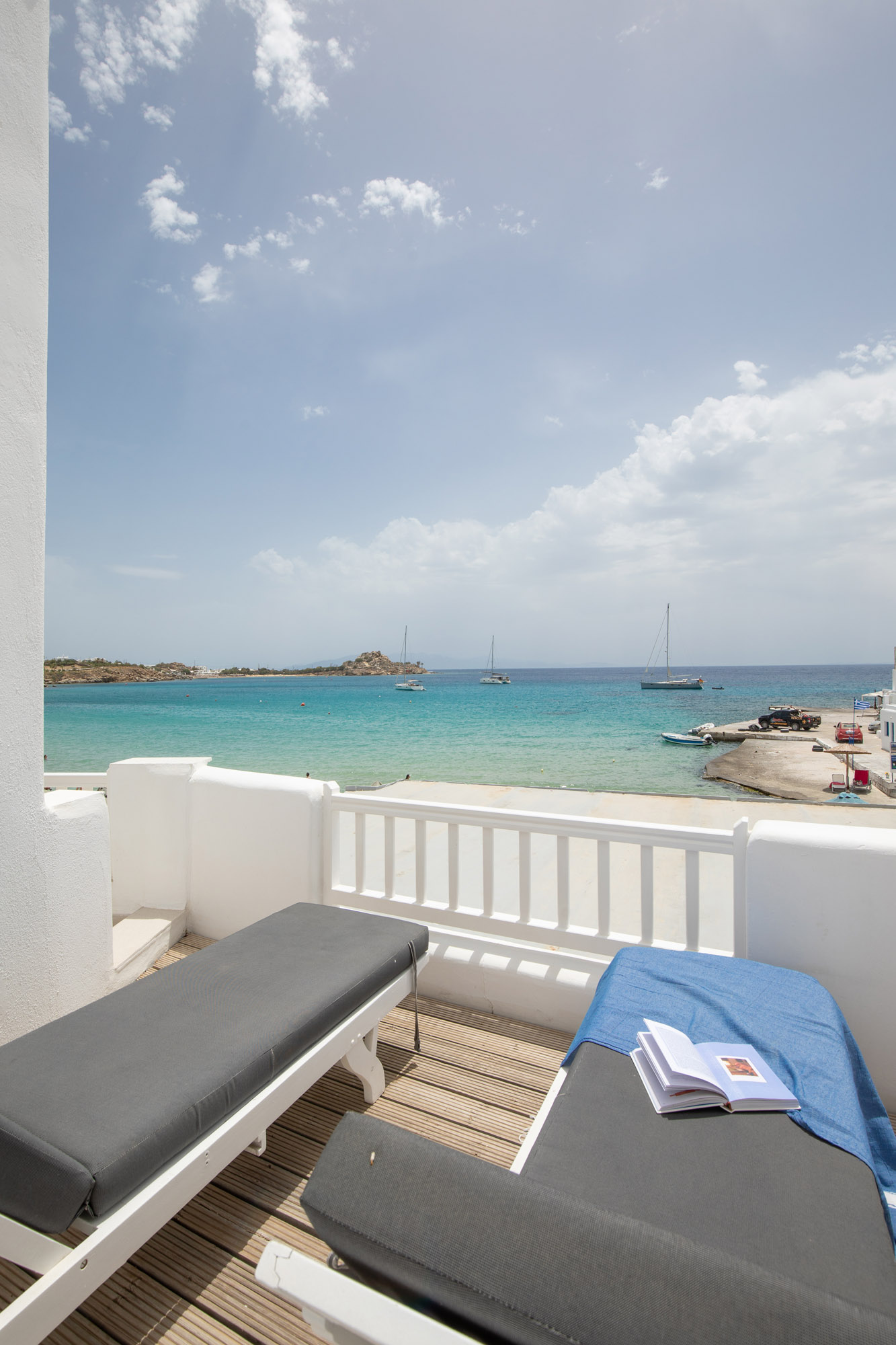 Luxury accommodation 40 m2, elegantly decorated ,fully renovated 2017 featuring a king-size and 2 twin beds, bathroom with all the amenities and 2 rainfall-showers ,individually air-conditioning (hot & cold),safety box, free Wi fi access,hairdryer,iron board and iron, satellite radio, 43″ satellite TV, refrigerator and private balcony with direct views of the Aegean Sea. Ideal for four people.located on the first floor.