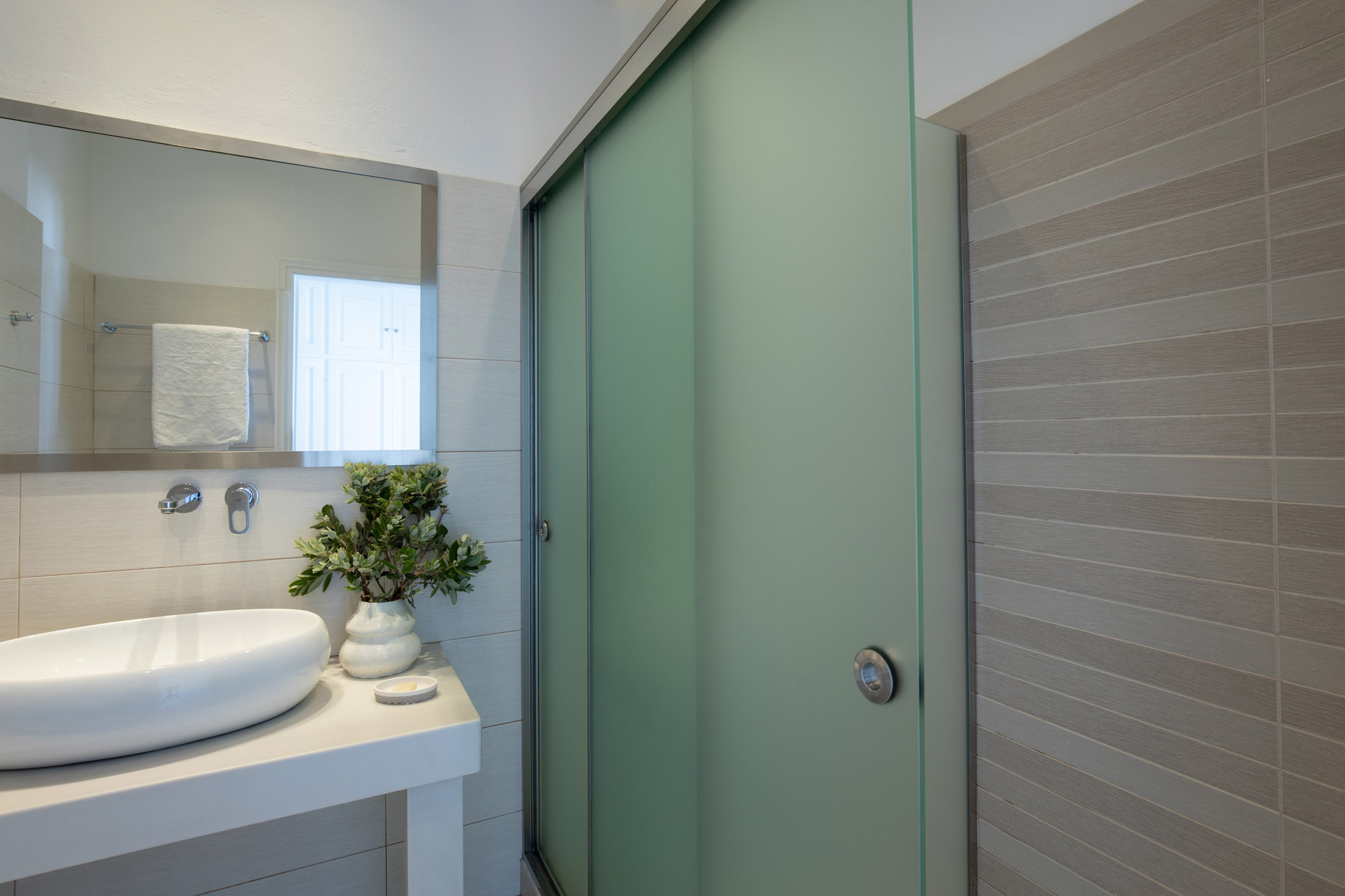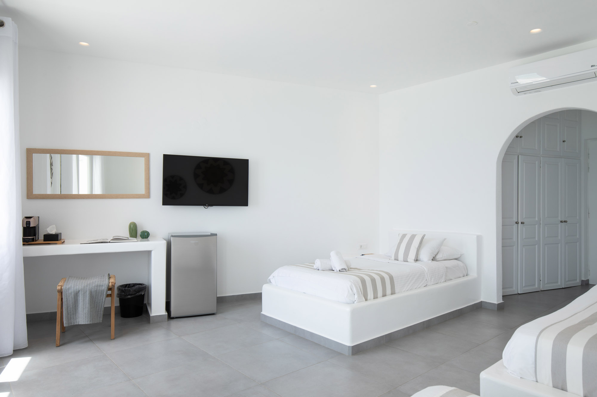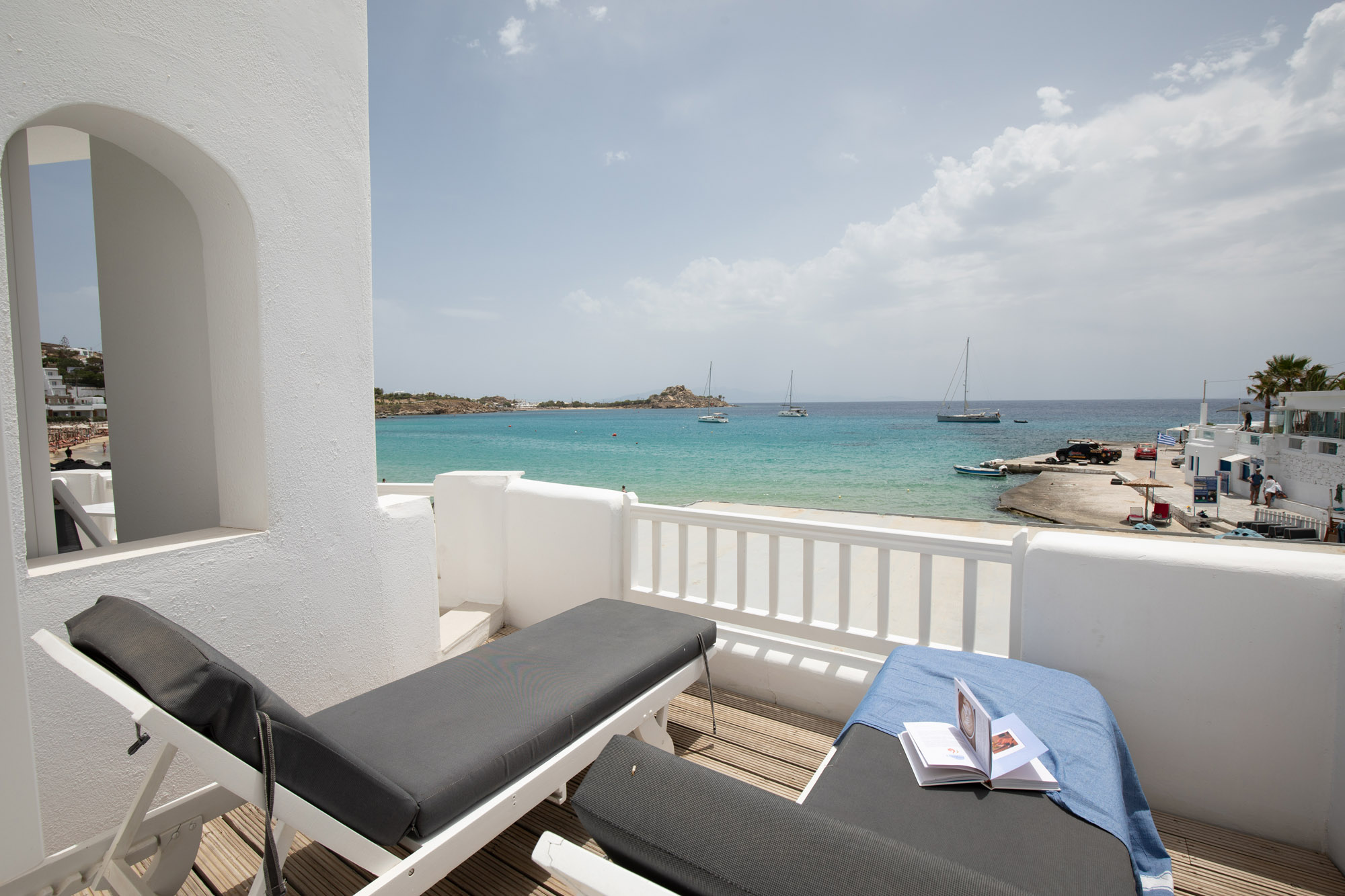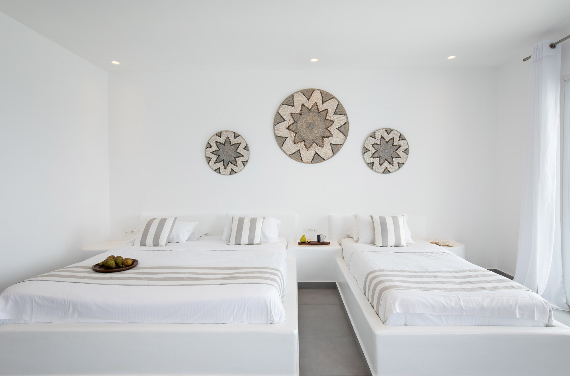 Luxury accommodation 40 m2, elegantly decorated ,fully renovated 2017 featuring a king-size and 2 twin beds, bathroom with all the amenities and 2 rainfall-showers ,individually air-conditioning (hot & cold),safety box, free Wi fi access,hairdryer,iron board and iron, satellite radio, 43″ satellite TV, refrigerator and private balcony with direct views of the Aegean Sea. Ideal for four people.located on the first floor.